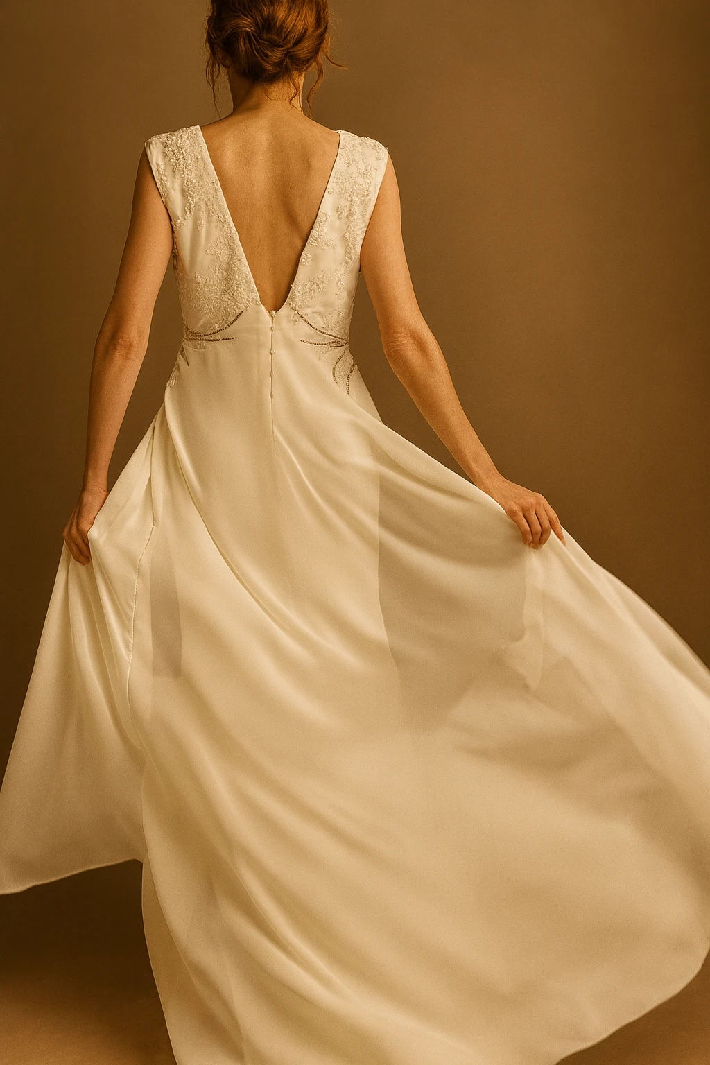 Un diseño que combina la sutileza de los bordados costura con la ligereza del movimiento.