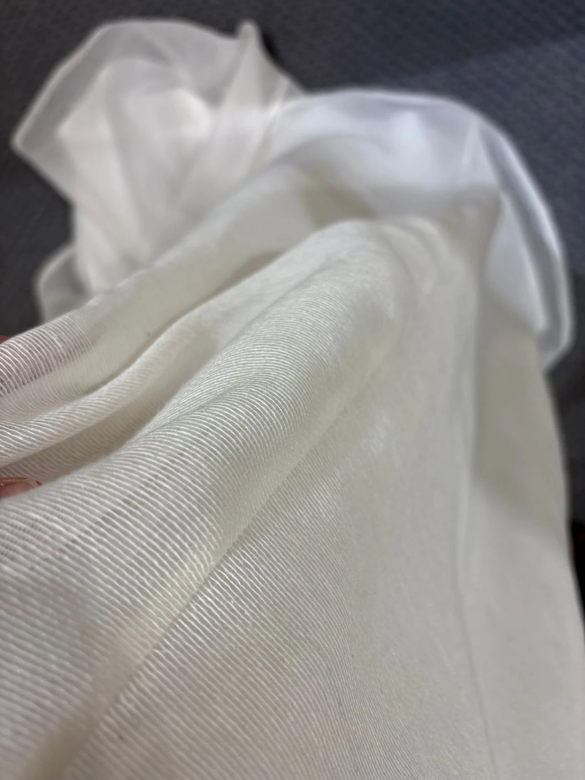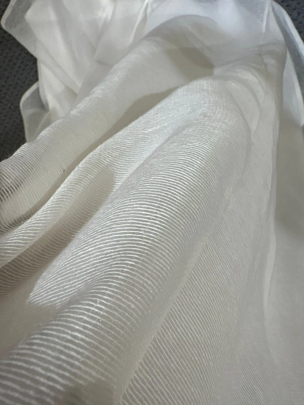 Confeccionado en gasa rustica, estilo red de textura sutil y liviana, forrado a tono, se destaca por su caída fluida y su movimiento natural. La moldería acompaña el cuerpo con suavidad, mientras la falda se amplia hacía el final, genera una sensación etérea y elegante. El textil, de trama delicada, aporta profundidad visual y un acabado refinado sin exceso.